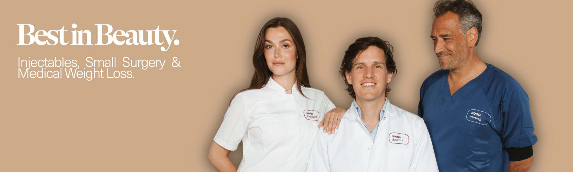 Soap Clinics is sinds 2025 samenwerkingspartner van ABC Clinic. Voor Botox, fillers, skinboosters en medisch afvallen met injecties kun je terecht op meerdere Soap Clinics-locaties verspreid door Nederland. In Amsterdam is het aanbod uitgebreid met small surgery, waaronder ooglidcorrecties, oorlelcorrecties en tepelcorrecties.